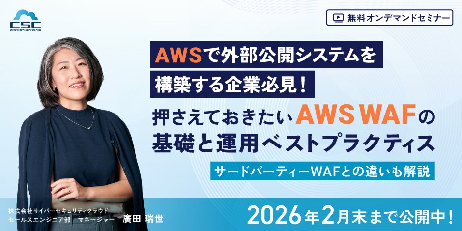 本セミナーでは、AWS環境におけるAWS WAFのメリットや特徴を整理し、サードパーティーWAFとの違いをわかりやすく解説します。